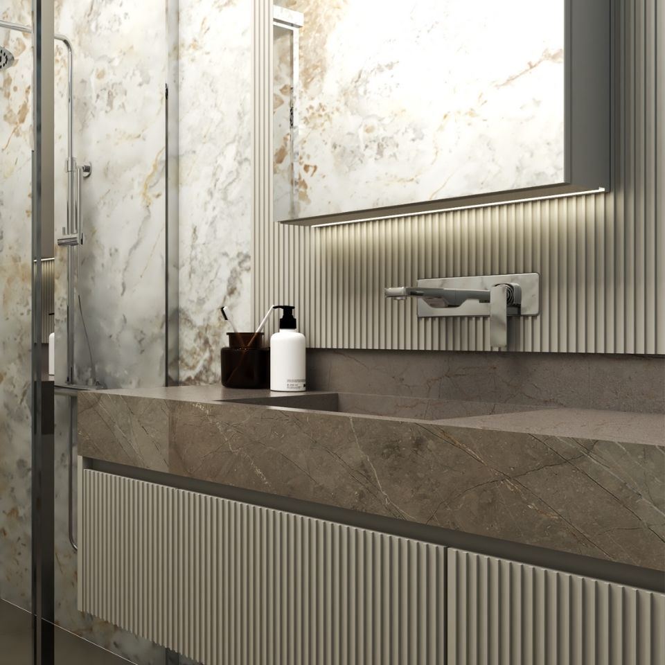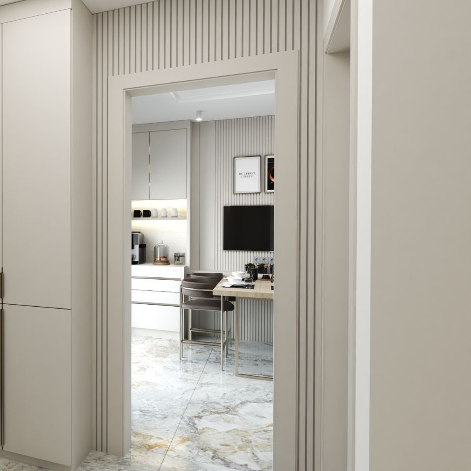 15 m² kullanım alanına sahip mutfak, modern tasarımı ve fonksiyonel planlamasıyla günlük yaşamı kolaylaştırır. Geniş pencere cepheleri sayesinde doğal ışıkla bütünleşen alan, aydınlık ve ferah bir atmosfer sunar. Doğal ışık sirkülasyonu ile desteklenen mutfak, yaşam alanlarıyla uyum içinde konforlu ve keyifli bir kullanım sağlar.